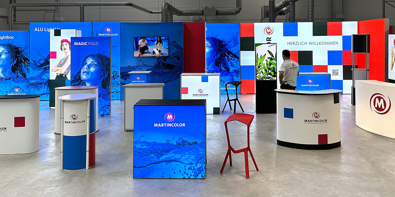 Unser Showroom bietet Ihnen die Möglichkeit, verschiedene Leuchtwandsysteme direkt miteinander zu vergleichen. Von ultraflachen Rahmenprofilen für den stationären Einsatz bis hin zu transportoptimierten modularen Messewänden für den flexiblen Messebau – hier erleben Sie die Bandbreite moderner Präsentationstechnik. Sie können ausprobieren, wie schnell sich LED-Messestände aufbauen lassen, welche Messesysteme sich besonders leicht transportieren lassen und wie flexibel sich Formate anpassen oder erweitern lassen.